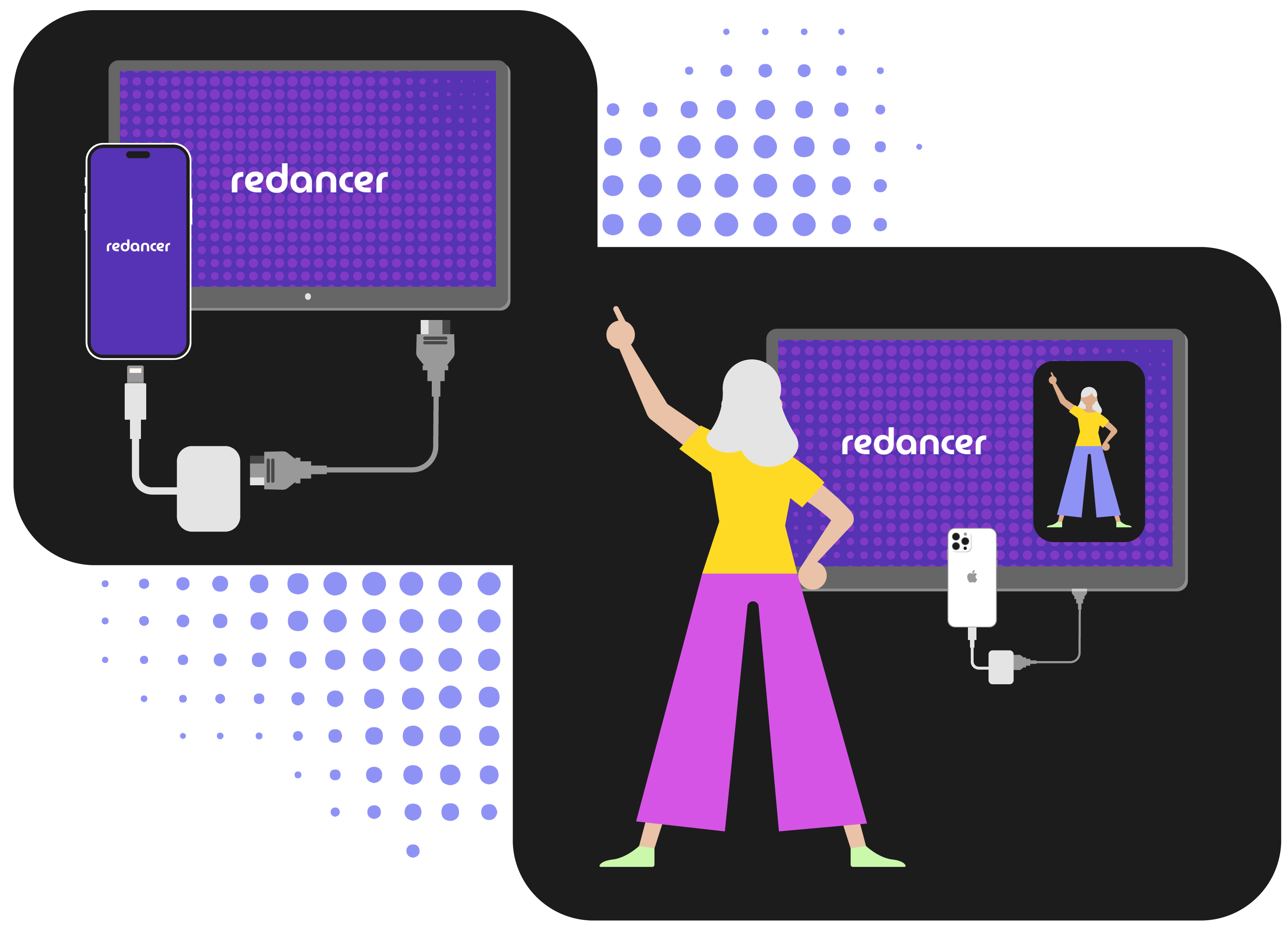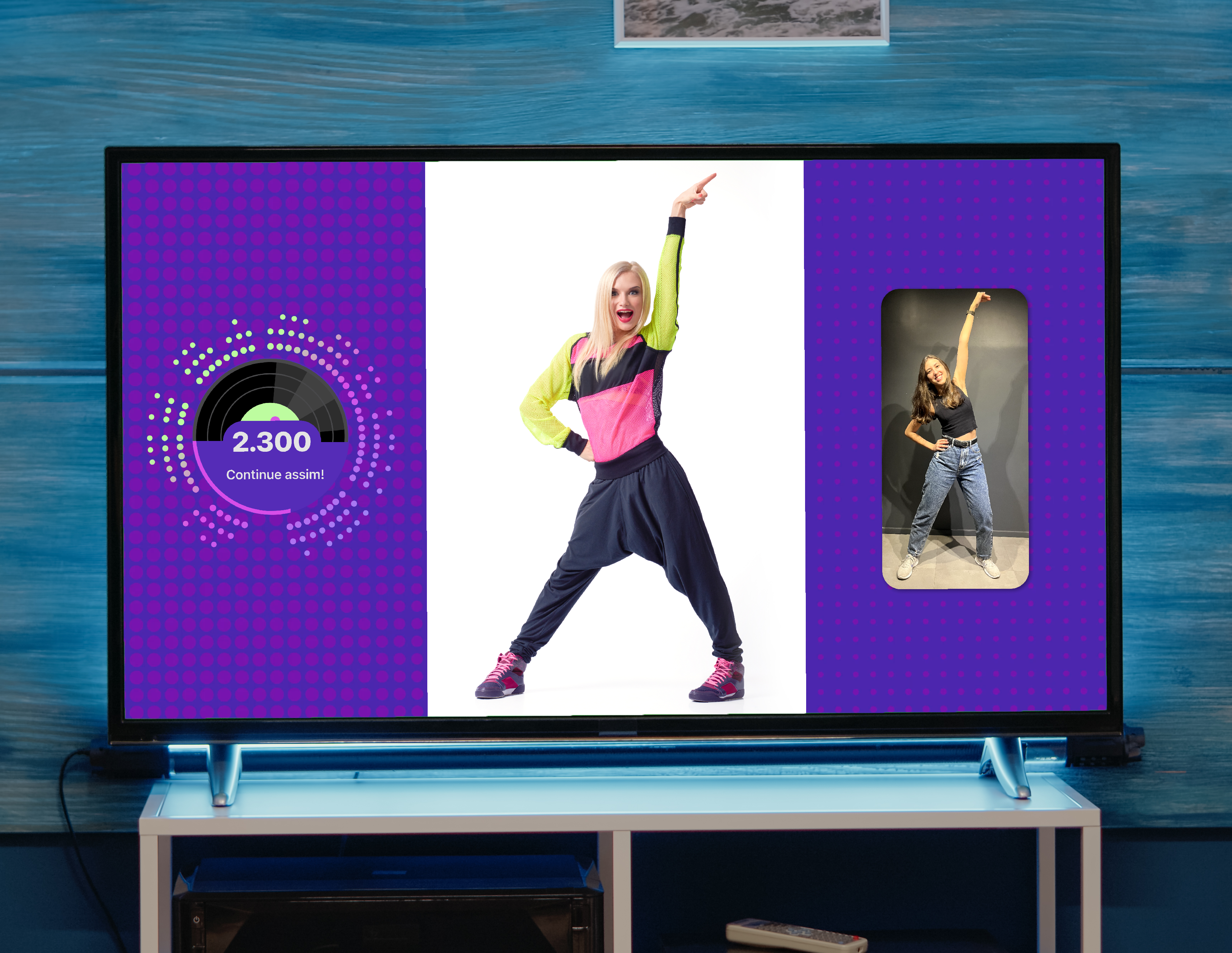 É muito simples começar a dançar. Basta conectar seu celular com a TV por meio de um cabo HDMI ou AirPlay, e posicionar o celular com a câmera traseira virada para o jogador.
